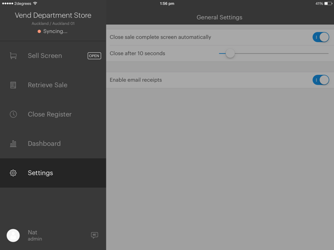 2. Mở ứng dụng Vend iPad và Chạm biểu tượng menu. Các bên sẽ mở ra.
