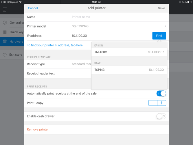 4. Nhấp vào nút màu xanh "Find". Để tự động thêm máy in của bạn chọn "TM-T88V", nếu có.
